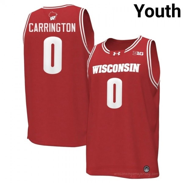 #0 Braeden Carrington Wisconsin Youth Premium Stitched Basketball Jersey | Red NCAA Game-Day Style