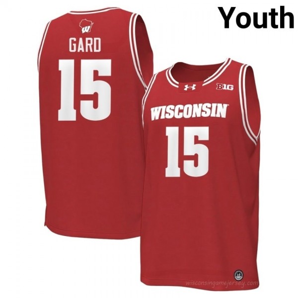 Isaac Gard Wisconsin #15 Jersey | Official Badgers Red Youth College Basketball Uniform 47022270