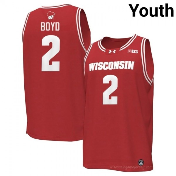 Nick Boyd Wisconsin #2 Jersey | Official Badgers Red Youth High School Basketball Uniform